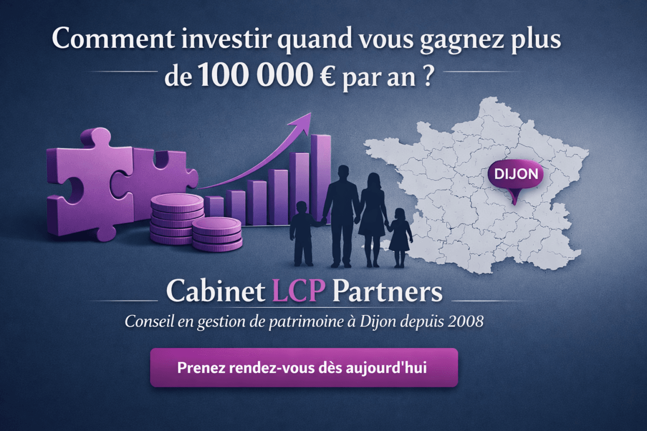 Vous percevez des revenus annuels supérieurs à 100 000 € et vous vous demandez comment faire fructifier votre patrimoine de façon intelligente ? Vous êtes au bon endroit. Le Cabinet LCP Partners, spécialiste du conseil en gestion de patrimoine à Dijon depuis 2008, accompagne chaque année des centaines de clients actifs, dirigeants et professions libérales dans la structuration de leur stratégie patrimoniale.